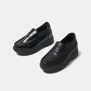 プレーンなローファースニーカーの佇まいの中に、内部にさりげなく高さを仕込んだ構造を備えることで、無理なく自然に6.5cmのスタイルアップを実現。スリムなローファーシルエットが脚のラインをすっきりと整え、足元から全体の印象まで洗練された雰囲気へと引き上げます。