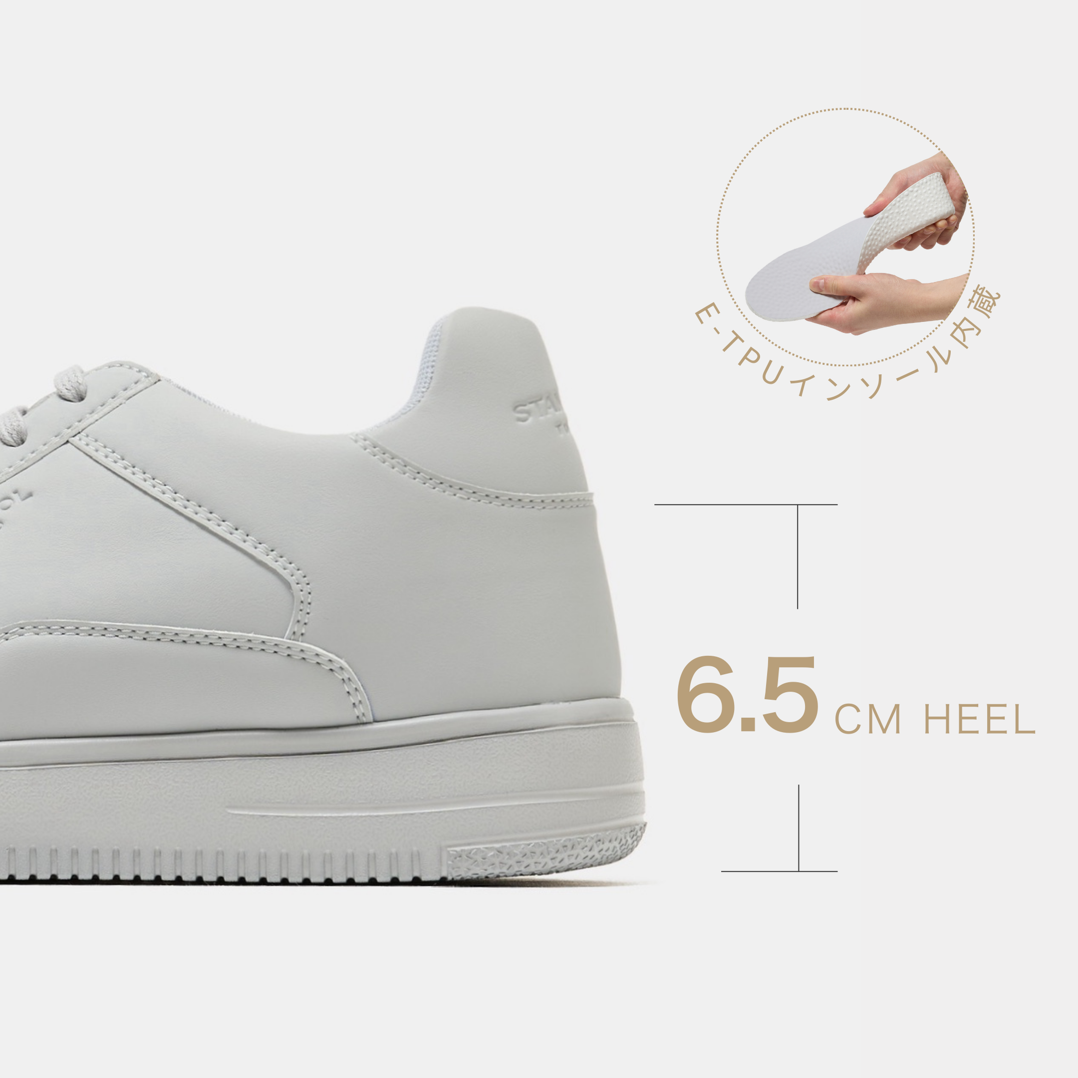 こだわり抜いた設計によって、外観からは想像がつかない約6.5cmのスタイルアップを手助け。よりファッショナブルな着こなしによって、あなたの日常を輝かせます。