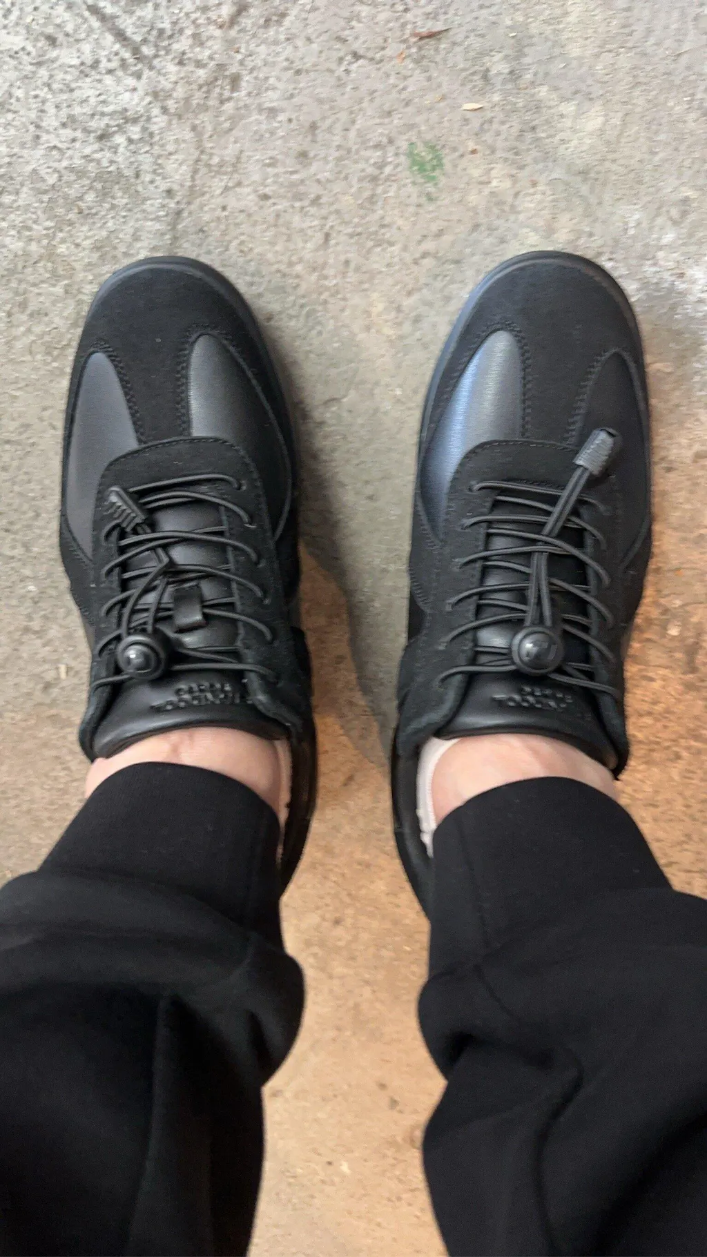紐は結んで履くのが面倒ですので、ゴム製の靴紐に交換して使用しています。